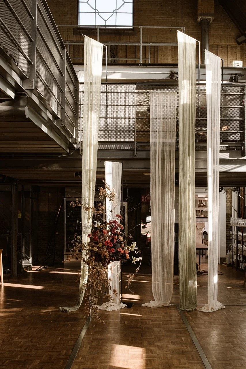Hieronder een impressie van een ceremonie bij Pompstation - het kan zowel intiem als groots doordat we een gedeelte van de zaal kunnen verbergen achter pipe & drape.